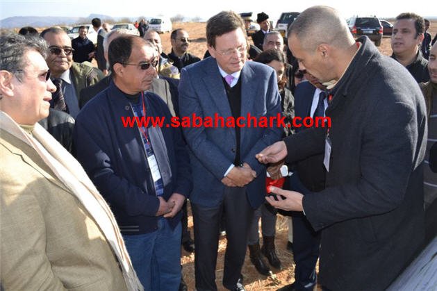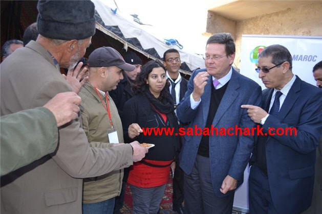 قام السفير البلجيكي بالمملكة السيد فرانك كاروي رفقة وفد من السفارة البلجيكية بالمغرب صبيحة يوم أمس الثلاثاء 17 دجنبر 2013 بزيارة تفقدية لمنطقة ماسين بتراب جماعة مشرع حمادي القروية بدائرة العيون الشرقية، و ذلك من أجل إعطاء الانطلاقة للشطر الثاني من مشروع تنمية سلسلة أشجار اللوز الممول من طرف الحكومة البلجيكية ، الذي سيستفيد منه هذه السنة حوالي 63 مزارع من المنطقة على مساحة حوالي 100 هكتار ، وكذلك في إطار تتبع مجرى الاستثمارات السابقة في نفس المجال ، و الوقوف على طريقة اشتغال الفلاحين الذين استفادوا من الشطر الأول .