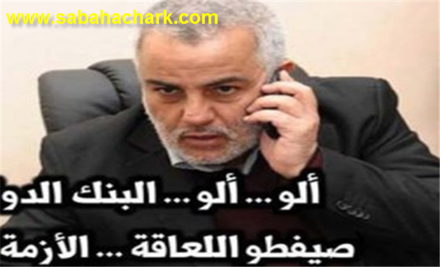 لكن صفحة التقشاب على السياسي . رأت الفرصة سانحة لتظهر بنكيران، وهو يحمل الهاتف وبجانبه عبارة “ألو ألو البنك الدولي صيفطو- اللعاقة راه الأزمة باقا”. وذلك بسبب شهية المفتوحة دائما نحوالإقتراض من الخارج.
