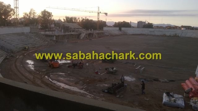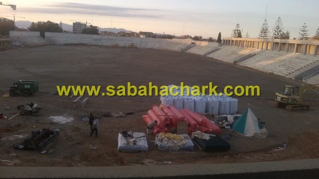 هذا وقد عاينت صباح الشرق وموقعها الإلكتروني , العشب الإصطناعي الذي يتواجد حاليا بالملعب , وسيتم تثبيته بحر هذا الأسبوع .