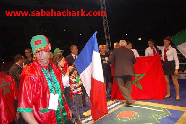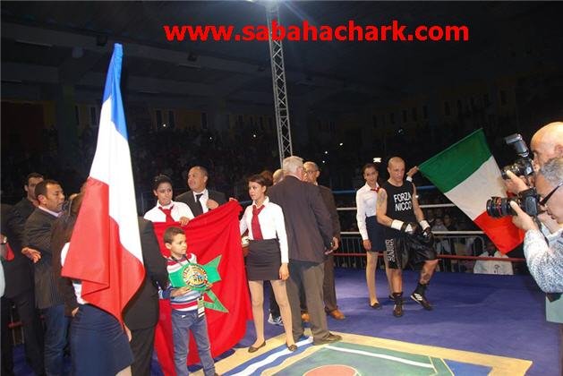 لتأتي المقابلة التي استأثرت باهتمام البركانيين خاصة , والمغاربة عامة ممن تابعوا التغطية عبر القناة الناقلة له . ظهر بنجدو وتلقى تشجيعا هستيريا من الحضور , صفق الجميع , وزادت دقات القلب من حيث عدد الضربات , صلت الأم من أجل ابنها , ودعت الأمهات في البيوت لابن مدينتهم , ورفع الجمهور أكف الضراعة لبنجدو … ولج أحمد الحلبة , فجلس الطفل الصغير بجانب والده , ينتظر مآل نتيجة البطولة العالمية . بدأ ابن بركان يتحرك في مكان النزال يمنة ويسرة , وعين الولد الصغير تراقب بامعان تحركات أرجله … تريث بنجدو قليلا , يجس نبض الإيطالي , وآذان البرعم الصغير تلتقط ما تجود به حناجر الآلاف من الجماهير التي كانت تهتف باسم بنجدو …. بنجدو ….