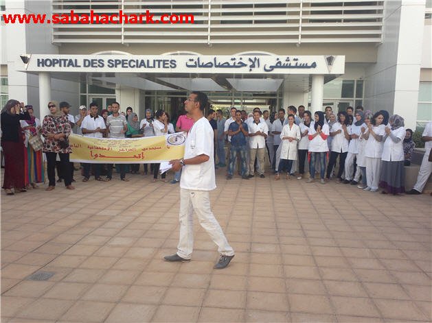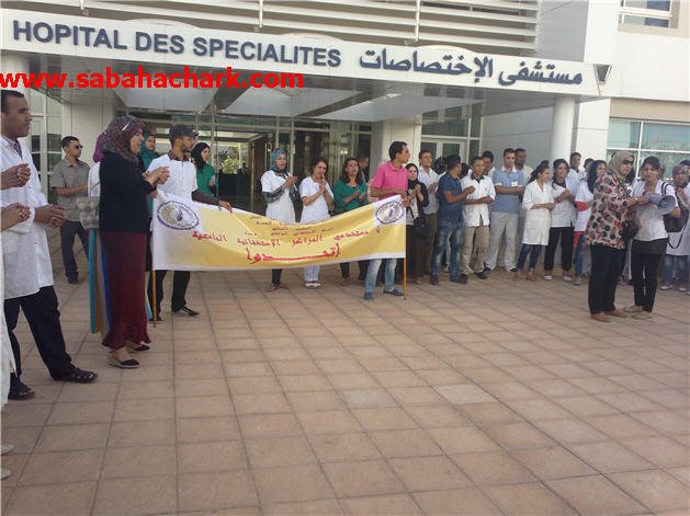 الوقفة جاءت تحت شعار : ” عطيوني حقي … عطيوني رزقي ” وحمل من خلالها المحتجون لافتات كتب عليها : مستخدمو المراكز الاستشفائية الجامعية اتحدوا … بدفاعنا عن حقوقنا نحمي مهنتنا … مستخدموا المركز الاستشفائي محمد السادس يطالبون بالصرف الفوري لرواتبهم …