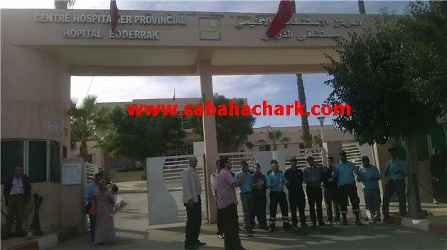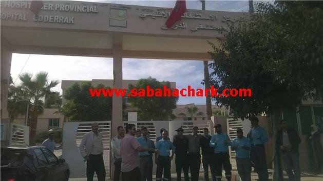 ضرب حراس الأمن “السكيريتي” التابعين للشركة المكلفة بحراسة مستشفى الدراق ببركان موعدا صباح يوم الأربعاء 15 أكتوبر 2014 أمام باب ” الأوبيطال” حيث نظموا وقفة احتجاجية للمطالبة بصرف أجورهم .