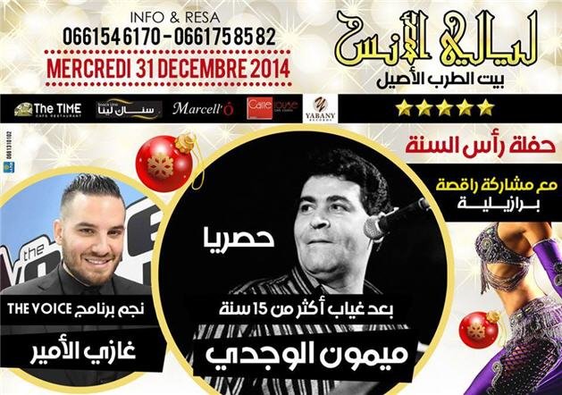 أحيا مغني الراي الشهير ميمون الوجدي، سهرة غنائية لمحبيه بمدينة طنجة، في سياق الاحتفالات التي عرفتها المدينة بمناسبة رأس السنة الميلادية. وكعادة كبار الفنانين، لم يبخل ميمون الوجدي على محبيه من محترفي فن الراي بطنجة، بمجالستهم ومناقشتهم حول أعمالهم الفنية. حيث التقى بمجموعة من الفانين والموسيقيين، من بينهم رشيد بوعسرية، رضوان الأسمر، جواد طه، كريم بودادي وهشام كويتمان .