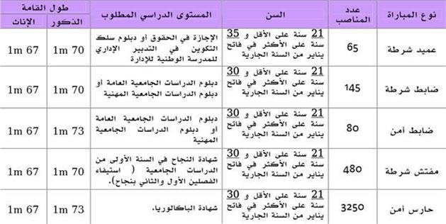 تنظم المديرية العامة للأمن الوطني يوم 10ماي 2015 بالرباط والدار البيضاء والقنيطرة وكذا بمدن أخرى بالمملكة إذا استوجب ذلك عدد المترشحين مباريات خارجية لتوظيف شرطيين بمختلف الدرجات حسب المناصب المذكورة أسفله، ويحتفظ ب 25 % من