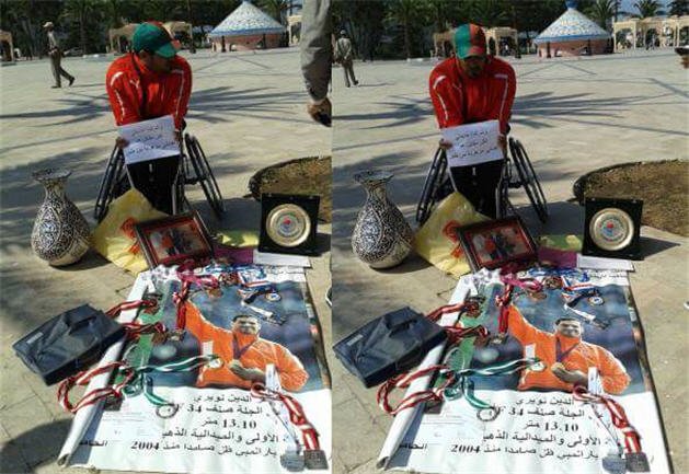 وعرض البطل الأولمبي المغربي، الميدالية الذهبية التي فاز بها في الألعاب بارالمبيا، التي أقيمت بالعاصمة الإنجليزية لندن، للبيع في الشارع العام، احتجاجا على التهميش الذي طاله وكان عز الدين النويري، قد فاز بالميدالية الذهبية في مسابقة رمي الجلة في النسخة البارالمبية من أولمبياد لندن 2012،بل أكثر من ذلك حطم رقما قياسيا عالميا في رمي الجلة . فئة 34″ ف” بمسافة 13 مترا و10 سنتمترات، وظل صامدا منذ عام 2004.