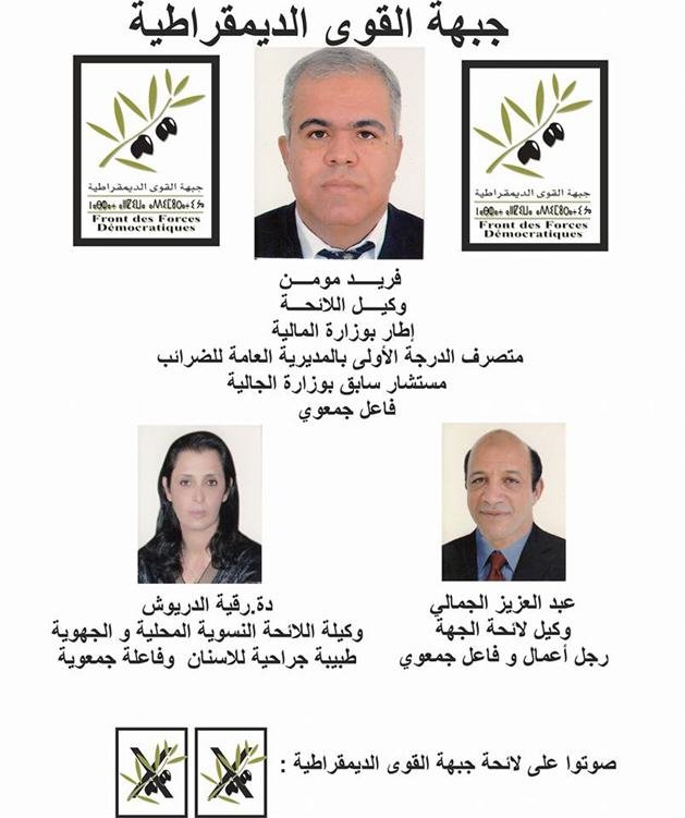 صوتوا على مرشحكم عبد العزيز الجمالي عن حزب جبهة القوى الديموقراطية “رمز الزيتونة”