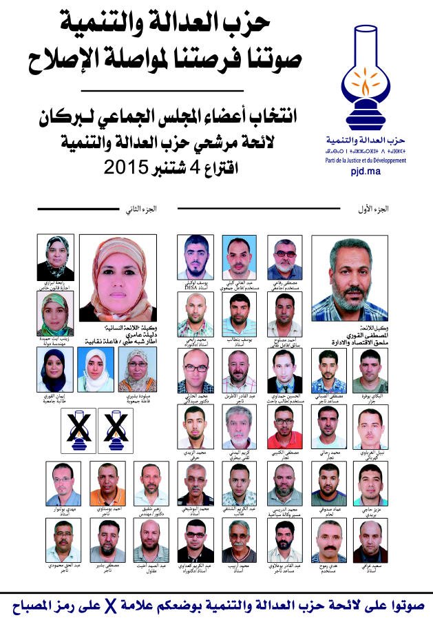 ج : نعتبر في حزب العدالة والتنمية الانتخابات الجماعية والجهوية لسنة 2015 منعطفا مهما في التطور الديمقراطي والتنموي للمغرب في ظل الدستور الجديد 2011 ، وهذا يتطلب منا تعبئة شاملة لمواصلة المعركة ضد الفساد ووضع أسس متينة للتنمية بالإقليم والجهة وتسريع وتيرة الإصلاح والتحاق مدينة بركان بركب مدن الجوار التي عرفت قفزة نوعية وانطلاقة جيدة لمشاريع التنمية يشهد بها الجميع .