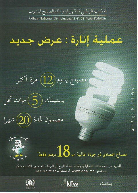 هذه المصابيح متوفرة لذا جميع وكالات المكتب الوطني للكهرباء والماء الصالح للشرب قطاع الكهرباء وجميع نقط استخلاص فواتير الكهرباء على صعيد إقليم بركان.