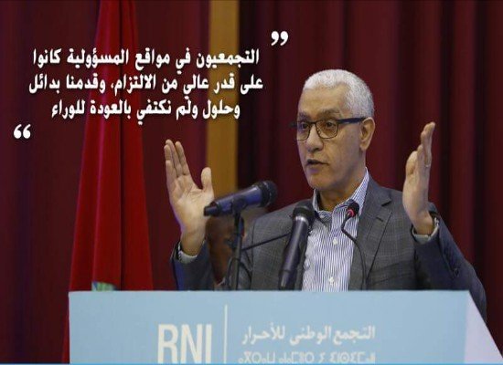 رئيس التجمعيين عاد للحديث عن أولويات الحزب مشيرا إلى أن الحزب لم يأتي للتشخيص من أجل التشخيص بل لتحقيق حلول فعالة وملموسة.