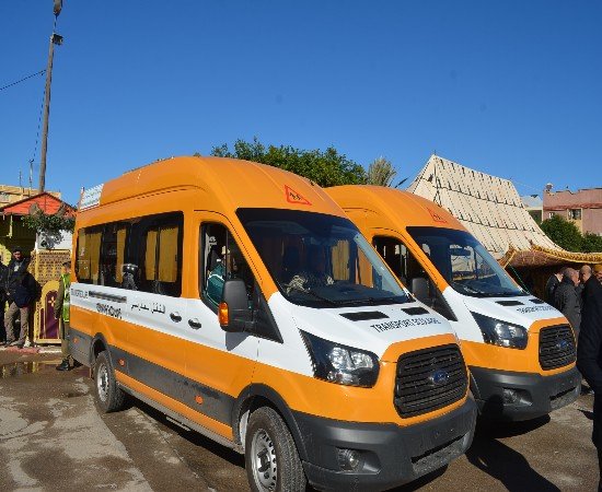 وفي إطار الجهود الرامية إلى التخفيف من معاناة الفئات المجتمعية التي تعيش أوضاعا هشة خاصة في مجال الصحةوالتعليم،وتسليم مفاتيح 02 سيارات إسعاف مجهزة ومكيفة لفائدة ساكنة الجماعات الترابية سيدي سليمان شراعةوجماعة تافوغالت بتمويل من المبادرة الوطنية للتنمية البشرية وبكلفة إجمالية تقدر ب 700.000 درهم. كما تم أيضا تسليم مفاتيح حافلتين للنقل المدرسي لفائدة الجماعة الترابية لسيدي سليمان شراعة و جمعية ” الرسالة ” لذوي الاحتياجات الخاصة ببركان بتكلفة إجمالية قدرت ب795.000 درهم و ذلك من أجل دعم أسطول النقل المدرسي ومساعدة الأسر على تحمل تكاليف التمدرس و محاربة أسباب الهدر المدرسي. كما قام في نفس السياق بتسليم سيارتين نفعيتين لفائدة جمعية ” البدر ” للمعاق و جمعية ” الرحمة ” للإيواء ببركان بمبلغ مالي يقدر ب 500.000 درهم.
