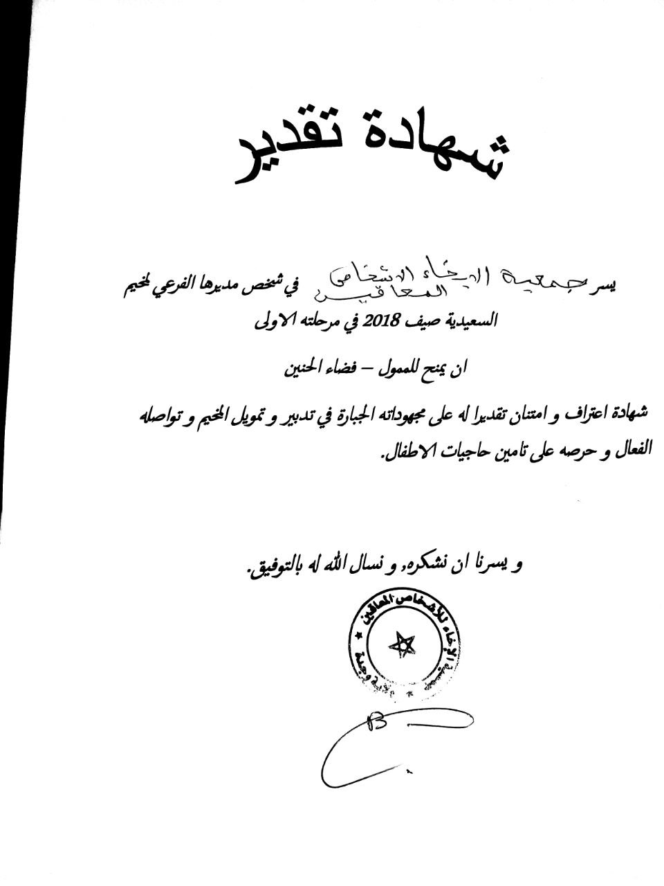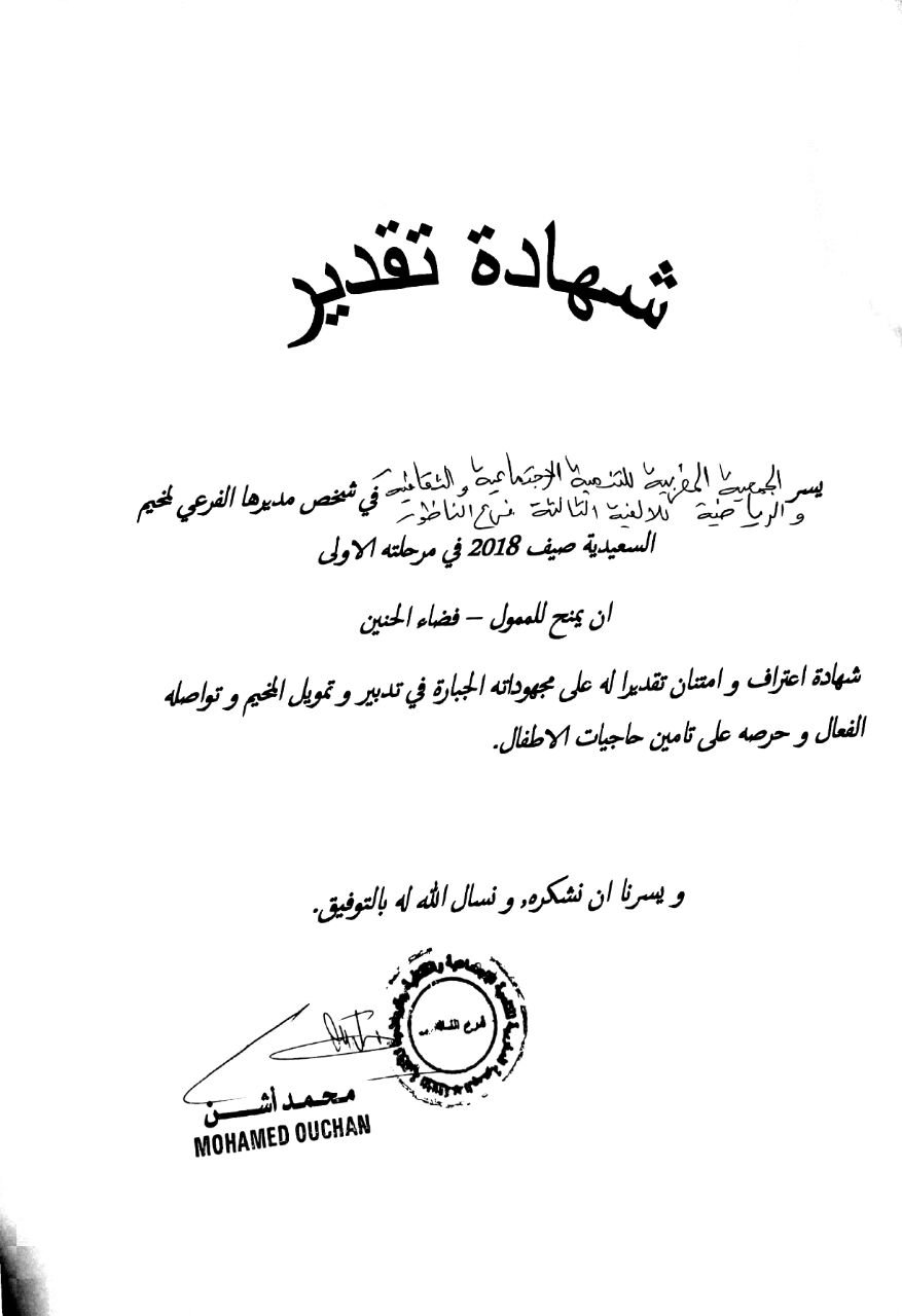ستجدون مع المقال صور شواهد جودة المقام و التغذية الموقعة من الجمعيات التي تعرض أطفالها لضربة الشمس .