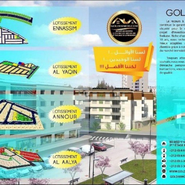 تعلن تجزئة النسيم عن انتهاء الأشغال فسارعو للإستفادة وحجز القطع الأرضية المحفظة المخصصة للسكن ذات المساحات المختلفة تتراوح بين 90 م.م إلى 120 م.م :فعلى الراغبين بالحجز المؤقت لإحدى هذه القطع الاتصال بالرقم التالي :