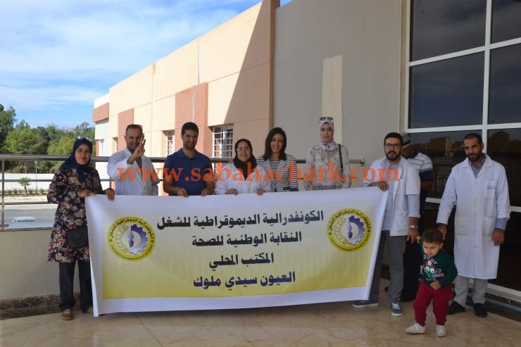 احتج العشرات من شغيلة قطاع الصحة بالعيون الشرقية UNTM و CDT، أمام المستشفى المحلي بالعيون سيدي ملوك صبيحة يوم الخميس 11 أكتوبر 2018 بتنفيذ وقفة احتجاجية إنذاريه لما آل إليه الوضع الكارتي الذي يعيش على وقعه القطاع الصحي بمدينة العيون الشرقية بصفة عامة ، بالإضافة إلى النقص الحاد على مستوى الأطقم الطبية وغياب التجهيزات الضرورية وكذا عدم التعاطي الإيجابي مع مطلب الشغيلة الصحيةومعالجة مجموعة من الإختلالات التي طالها الإهمال .