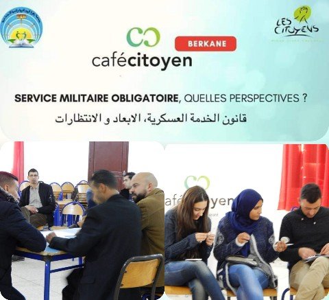 نظمت جمعية زهرة الربيع للأعمال الإجتماعية بركان يوم الأربعاء 14 نونبر 2018، بدار الشباب الأندلس،نقاش معمق حول قانون الخدمة العسكرية أبعاده وإنتظاراته من أجل إيجاد مخرجات تعبر عن الأسس التي بني عليها إذ تعد مقهى المواطنة كغيرها من المحطات التي مرت بها مختلف جهات المملكة والهادفة الى تحليل مختلف القضايا والأحداث المرتبطة بسياق نشاط الشارع المغربي ونبض أراءالرأي العام وحسب تصريح أنور الباحث في الإعلام والسياسة الدولية فإن هذا اللقاء ماهو إلا بحث عن مكامن إيجابياته وسلبيته
