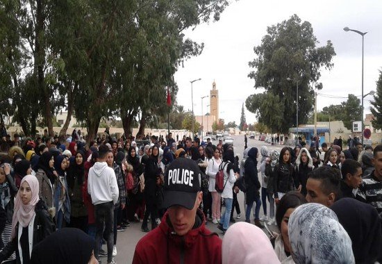 على غرار باقي مدن المغرب التي عرفت احتجاجات تلاميذية في مختلف مؤسسات المملكة خرج، صباح اليوم الجمعة 9 نونبر 2018، المئات من تلامذة الثانويات والإعداديات مفرقين على مجموعة من المؤسسات التعليمية بالعيون الشرقية في مسيرات احتجاجية مشيا على الأقدام، جابة شوارع العيون الشرقية ، للتعبير عن رفضهم لقرار الحكومة الذي اتخذته بخصوص الساعة الجديدة في مسيرات احتجاجية “ساخطة” على القرار الذي اتخذته حكومة العثماني والقاضي باستعمال التوقيت الصيفي توقيتا دائما طيلة السنة.