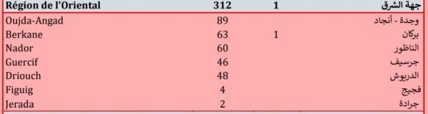 أما بخصوص تقسيم الحالات 312 المسجلة بالجهة الشرقية لهذا اليوم، فجاءت على الشكل التالي: