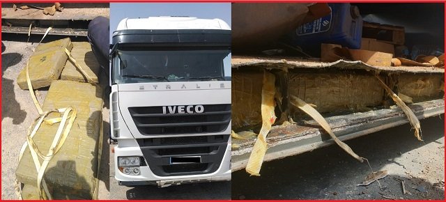 الكمية ضبطتها زمرة “السكانير” ومكافحة المخدرات، وكانت مخبأة بإحكام في أرضية مقطورة شاحنة تحمل لوحة أرقام إسبانية.