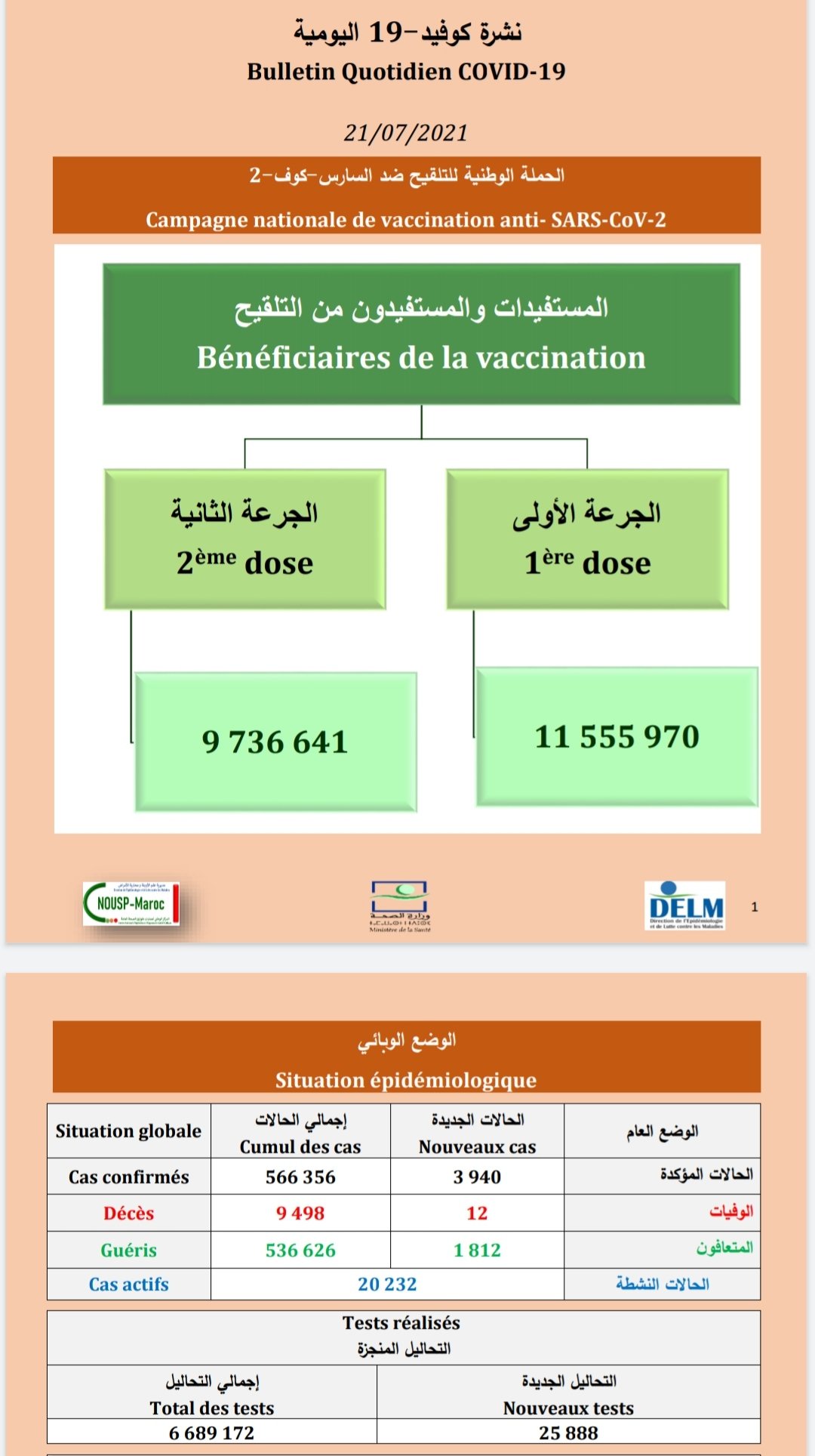أعلنت وزارة الصحة المغربية، مساء اليوم الأربعاء 21 يوليوز 2021، عن تسجيل 192 حالة إصابة جديدة بفيروس كورونا بالجهة الشرقية.