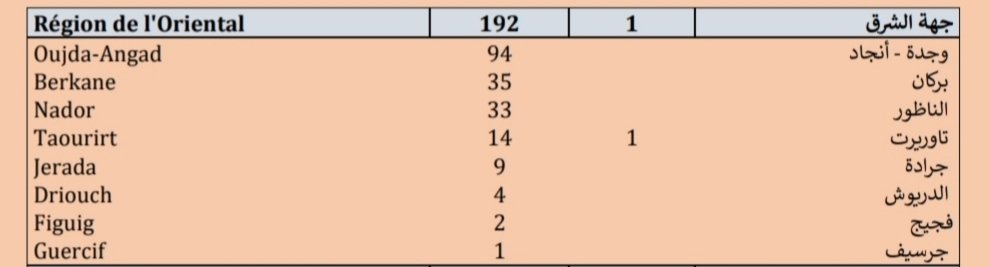 أما بخصوص تقسيم الحالات 192 المسجلة بالجهة الشرقية لهذا اليوم ،فجاءت على الشكل التالي: