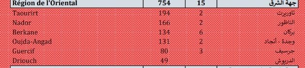 الحصيلة الإجمالية لهذا اليوم بمدن الجهة الشرقية كانت كالتالي: