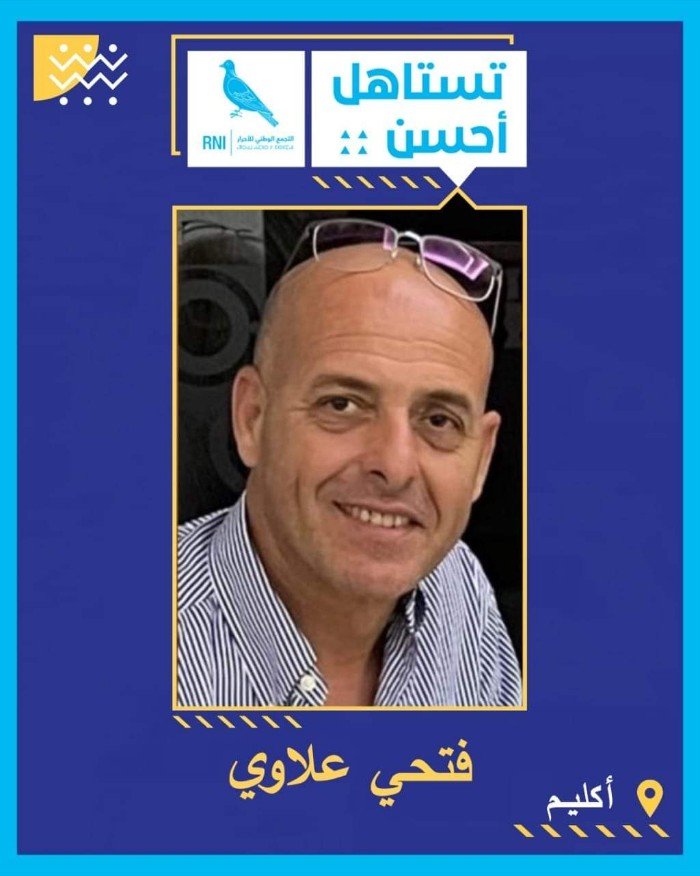 علاوي فتحي ابن منطقة تغاسروت المتاخمة لتافوغالت وزكزل ، آثر الترشح باسم حزب الحمامة في الانتخابات الجماعية لأكليم، ودخوله رهان الانتخابات التشريعية كثاني لائحة الأحرار بعد وكيل اللائحة البروفسور محمد الصديقي الكاتب العام لوزارة الفلاحة…فتحي علاوي الذي يتمتع بشعبية جارفة بأكليم ،وهو أمر لا يختلف عنه اثنان، دليل قاطع على أن ابن الحاج علاوي رجل تحدي، قطع عهدا على نفسه ألا يتخلى عن أكليم التي خلق بها كتلة ناخبة في مستوى التطلعات، تتجاوب معه في السراء والضراء، وتساعده على إبراز هذه الجماعة.