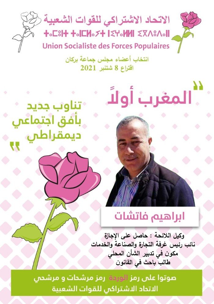 لائحة إبراهيم فشات مثلها مثل باقي اللوائح، ستستعمل مختلف الأسلحة لضمان أكبر قدر من الأصوات، في استحقاقات تميزها هيمنة الجائحة على اجواء الحملات، فحظ موفق لوكيل لائحة الوردة في انتخابات الثامن من شتنبر 2021.
