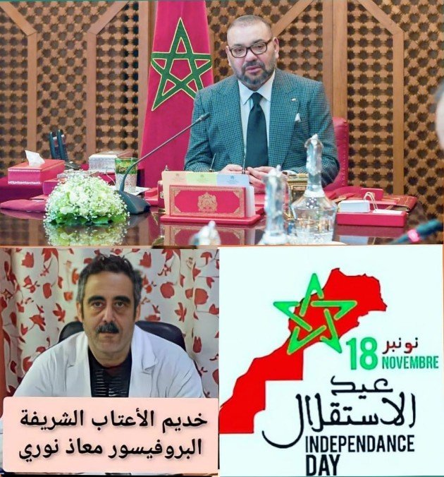 بمناسبة الذكرى السادسة والستين لعيد الاستقلال المجيد، وفي غمرة السعادة التي يعيشها الشعب المغربي، يتقدمالسيدالدكتور البروفيسور معاذ نوري، مدير مصحة الشفاء بوجدة، أصالة عن نفسه ونيابة عن كافة أطر وموظفي ومستخدمي مصحة الشفاء، بتهنئة إلى السدة العالية بالله صاحب الجلالة الملك محمد السادس نصره الله وأيده ،داعيـن العلـي القديـر أن يشمله برعايته و عنايته وأن يحفظ قائـد مسيـرة الأمـة ورمـز وحدتها و ضامن استقرارها وأن يقـر عيـن جلالته بولـي عهده المحبـوب صاحـب السمـو الملكـي الأميـر الأمجـد مـولاي الحسـن وبصنوته الأميـرة الجليلـة للا خديجـة وأن يشـد أزره بشقيقه صاحـب السمـو الملكـي الأميـر الجليـل مـولاي رشيـد وبسائـر أفـراد الأسـرة الملكية الشريفة، ويحقق على يديه الكريمتيـن كل ما يصبو إليه من رقـي ونمـاء وازدهـار واستقـرار لشعبه الأبـي المتعلـق على الدوام بأهـداب عرشه العلوي المجيـد، وأن يسكن فسيح جنانه فقيدي العروبة والإسلام المغفور لهما جلالة الملك محمد الخامس، ومبدع المسيرة الخضراء جلالة الملك الحسن الثاني.راجين من العلي القدير أن يديم على بلدنا الأمن والأمان والتقدم والازدهار