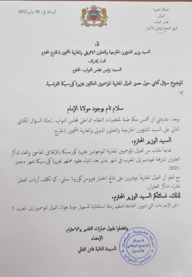 حول مصير العمال المغارية الموسمين العالقين بجزيرة كورسيكا الفرنسية.