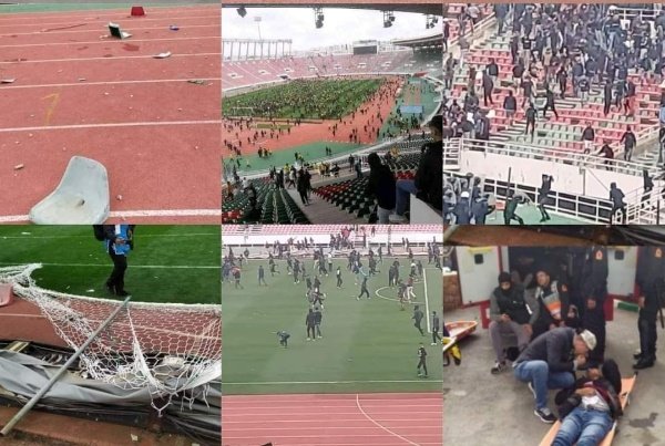 وبعد اطالع اللجنة على مقاطع الفيديو التي توثق لأحداث الشغب التي عرفتها المباراة وما تلاها من أحداث لا رياضية مؤسفة تمس بسمعة كرة القدم ببلادنا.