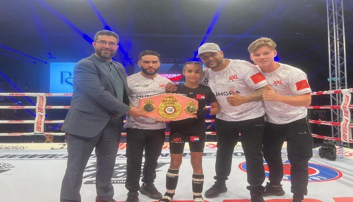 أميرة الطاهري البالغة من العمر 13 سنة وصاحبة الوزن 38 كيلو فازت على منافستها من بلجيكا.