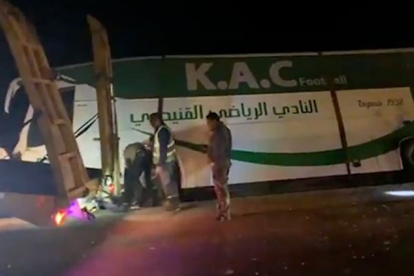 أفادت السلطات المحلية بإقليم سيدي بنور بأن 17 من لاعبي فريق النادي الرياضي القنيطري لكرة القدم أصيبوا بإصابات خفيفة، فيما أصيب 3 آخرون بجروح متفاوتة الخطورة، إثر حادثة سير تعرضت لها حافلة النادي مساء يوم الجمعة 25 نونبر 2022، عند مدخل مدينة سيدي بنور.