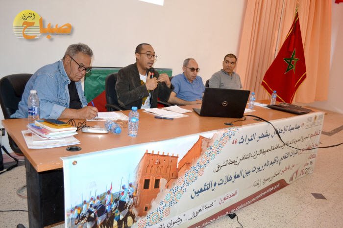 فيما سلط عبد الكريم شياحني،الضوء على ملامح من التراث الثقافي غير المادي بجهة الشرق،من خلال نصوص زجلية،و التي تشي بحمولة الوعي الذاتي و النفسي و الاجتماعي و التاريخي،كمرآة للحضارات،تتجاوز عتبة التعبير عن الإبداع،لتصبح ثروة ينبغي استثمارها للمساهمة في تنمية الاقتصاد السياحي.