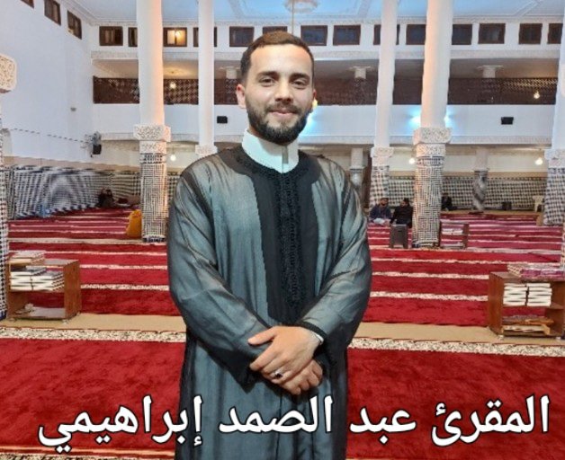 للإشارة، فالمقرىء عبد الصمد إبراهيمي، من مواليد 1993 بمدينة بركان، حفظ القران الكريم في مسجد حذيفة بن اليمان على يد شيخه الأستاذ مصطفى ابراهيمي حفظه الله ثم التحق بمدرسة الإمام ورش لتحفيظ القرآن الكريم وتدريس علومه ثم بعدها الى سلك الإجازة بجامعة محمد الاول بوجدة لديه خبرة في أداء صلاة التراويح منذ أزيد من أربعة عشر سنة تقريبا في عدة مساجد ومهام الخطابة بالجهة الشرقية، حاليا وهو يحضر لنيل الإجازة في الشريعة الإسلامية ومأموم في مسجد المعراج.