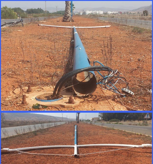 أعربت ساكنة الجوهرة الزرقاء بالسعيدية عن قلقها واستيائها من المسؤولين وعلى رأسها المجلس الجماعي بسبب الإهمال الذي طال البنية التحتية الكهربائية من صيانة بشكل دوري لضمان سلامة المواطنين خاصة بعد سقوط عمود كهربائي حديدي على الأرض لأزيد من شهر وسط الطريق الساحلية بالجوهرة الزرقاء بالسعيدية، يحمل اسلاكا متصلة بتيار كهربائي وهو ما يشكل خطرا كبير على حياة المواطنين دون أي تدخل من الجهات المعنية.