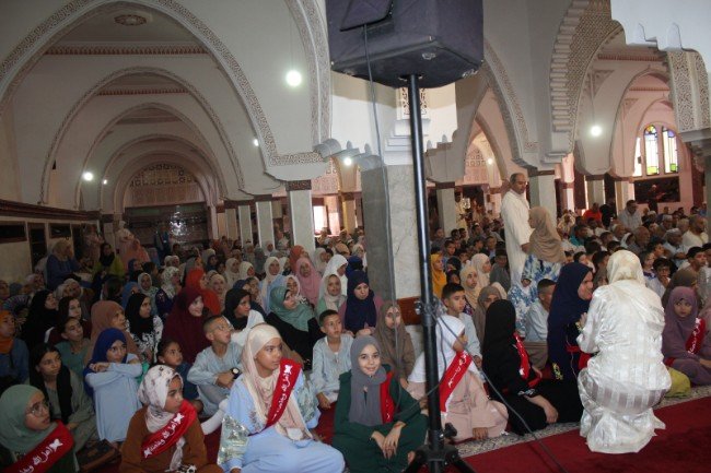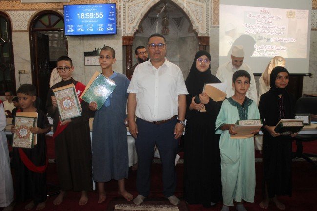 تخليدًا لذكرى عيد العرش المجيد، وبمناسبة اختتام الدورة الصيفية العشرين لتحفيظ القرآن الكريم للأطفال بمساجد إقليم بركان، نظم المجلس العلمي المحلي لبركان، بتعاون مع المندوبية الإقليمية للشؤون الإسلامية وجمعية خيركم لخدمة القرآن الكريم، حفلًا دينيًا بهيجًا تحت شعار: “يوم القرآن الكريم”، وذلك يوم الثلاثاء 5 غشت 2025، بمسجد عمر بن الخطاب بمدينة بركان، عقب صلاة العصر مباشرة.