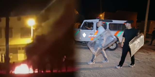 و في التفاصيل،تسبب قيام محتجين برشق العناصر الأمنية بالحجارة.و إضرام النار في أعمدة شبكة الهاتف،و تهشيم الواجهة الزجاجية للمركب الاجتماعي،في حالة من التوتر في محيط موقع الاحتجاج.