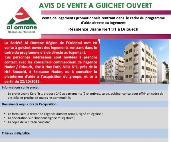Al Omrane Région de l’Oriental est une filiale du Groupe Al Omrane
