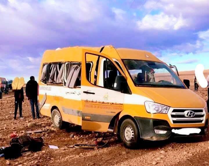 وقعت حادثة سير مروعة أصيب فيها 11 تلميذ بجروح. مساء أمس01 يوليوز الجاري، في حادثة سير لحافلة للنقل المدرسي بتنجداد إقليم الرشيدية .