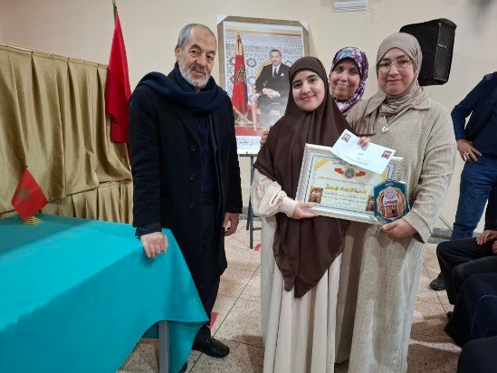 أما الأستاذ أحمد العمراني، رئيس الجمعية، فأكد أن هذا الحفل يشكل مناسبة لتتويج نخبة من الطالبات والطلبة المتفوقين في مسابقتي تجويد القرآن الكريم والموعظة الحسنة خلال الموسم الرمضاني. وأشار إلى أن هذه المبادرة امتداد لمسار طويل من العمل التربوي والعلمي الذي دأبت عليه الجمعية منذ تأسيسها يوم 23 غشت 1990 بقاعة البلدية بمدينة بركان، على أيدي ثلة من المؤمنين والمؤمنات الذين أسهموا في خدمة القرآن الكريم وتعليم علومه. كما أوضح أن الجمعية تفكر مستقبلاً في توسيع هذه المسابقة لتصبح ذات بعد وطني.